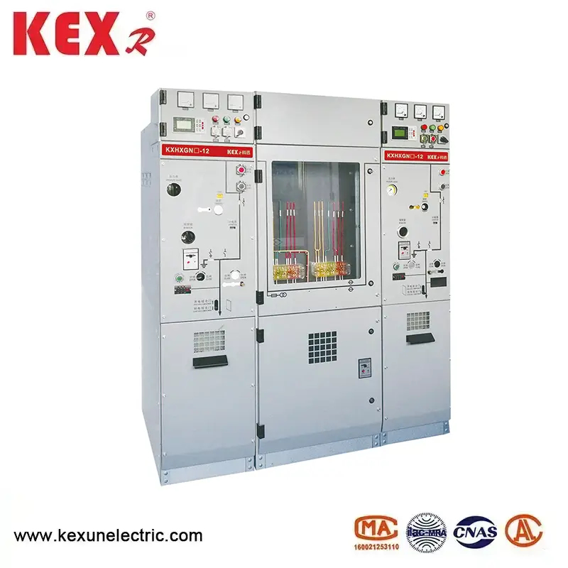Appareillage de commutation AIS de type KXHXGN-12 produit par KEXR, un fournisseur d'équipement de transmission et de distribution d'alimentation en Chine, est une armoire de réseau de cycle à gaz (C-GIS) de 12 kV (C-GIS) avec du gaz de protection de l'environnement (tels que de l'air sec, de l'azote ou du gaz mixte) comme moyen d'isolation, qui convient aux réseaux de distribution du réseau de terminaux. Modèle: KXHXGN-12 Marque: KEXR